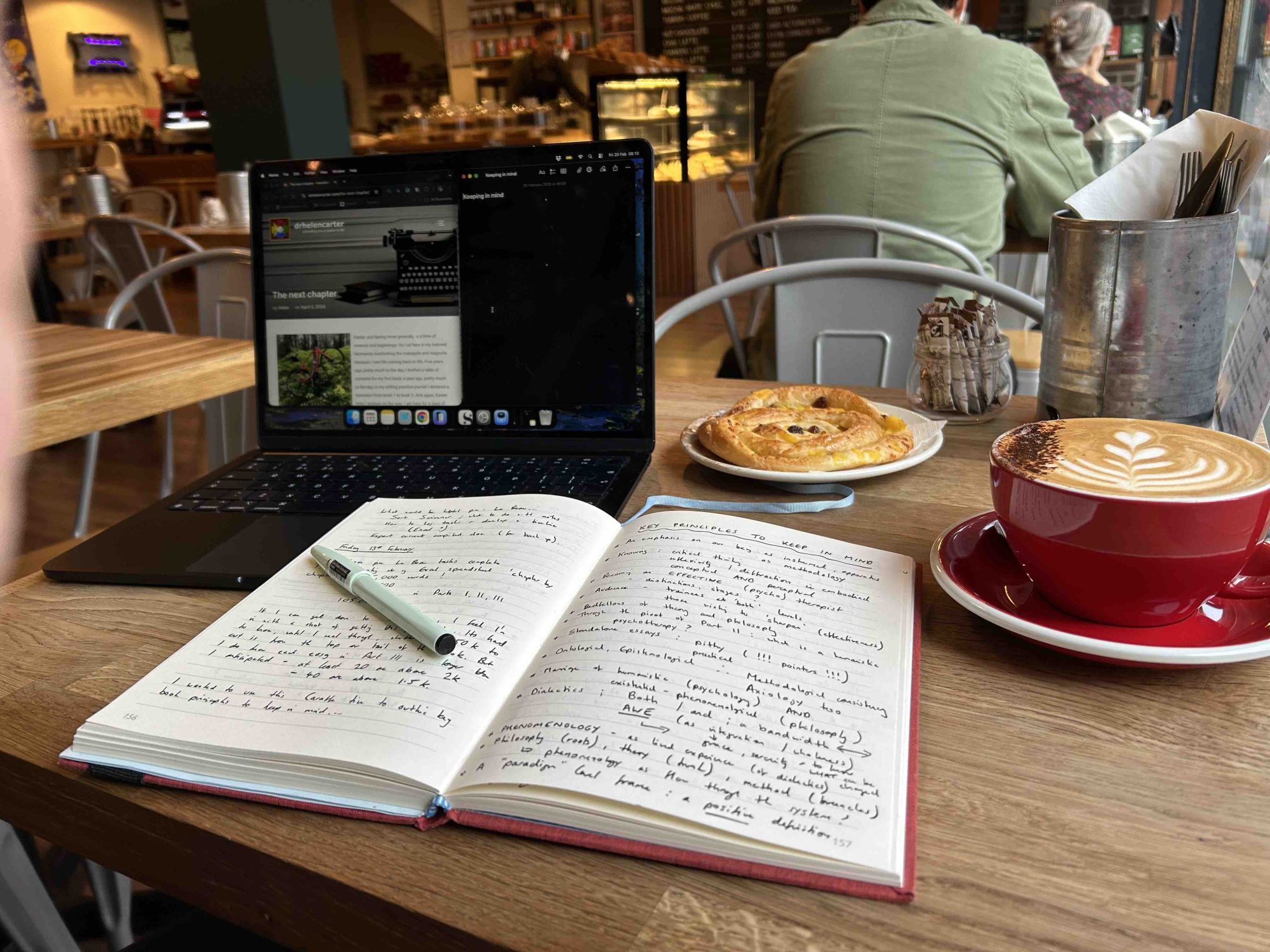 And so, here I sit in my happy place at a certain cafe in my home town of Lewes. Last week I sat in this same place, sketching out in my writing notebook what are the main themes and principles of the text. As someone who marks a lot of assignments and sees varying degrees of someone sticking to task, I am mindful to keep in mind the central tenets set out in the preliminary chapters and not losing the main threads in what I am weaving: and that is really easy to do over the course of three parts and over 200,000 words! Writing this blog is another way to help solidify and keep in mind the main theses.